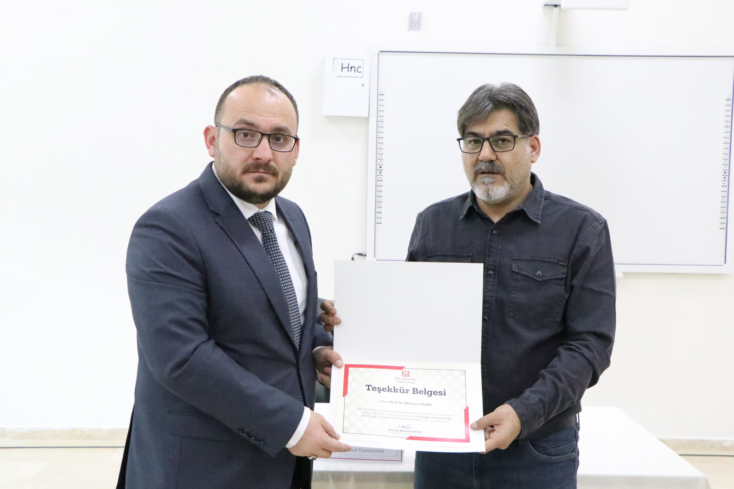 Seminerin sonunda katılımcılarla soru-cevap bölümü gerçekleştirildi. Program Rektörümüz Prof. Dr. Mustafa Alican’ın, Prof. Dr. Mehmet Özger’e katkılarından dolayı teşekkür belgesi takdim etmesiyle sona erdi.